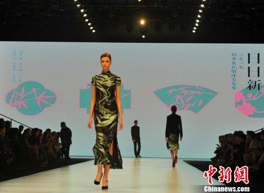 图为雄安国际服装文化节期间,模特进行中式旗袍展示。 韩冰 摄