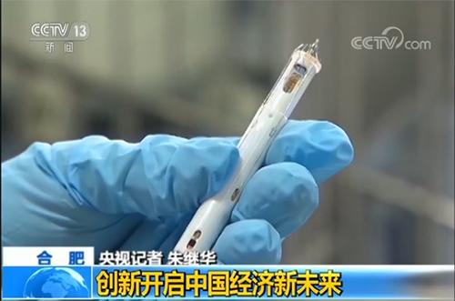 记者朱继华说,我手里拿的这个像粉笔一样的东西,是我国刚刚研制成功的超级显微镜,如果用它来观察头发丝,扫出来的断面相当于是一个足球场那么大。不仅如此,它还是世界上首个用在超强磁场中的显微镜。