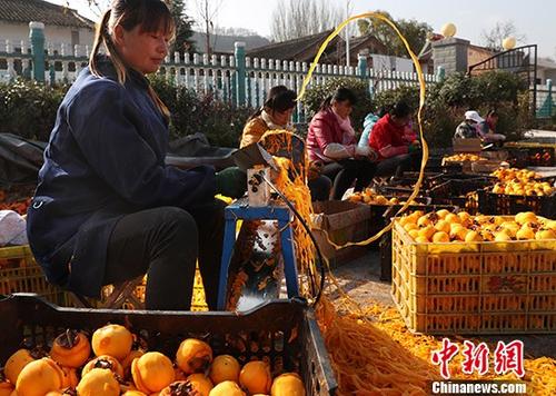 资料图:柿子深加工助力陕西陇县范家营村脱贫。 中新社记者 宋吉河 摄