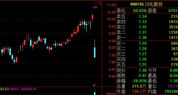 然而,投资者未能如愿以偿。18日,川化股份低开低走,最终以全天最低价7.3元收盘,跌幅高达28.92%。