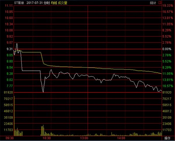 2017年7月31日,暂停上市一年多的ST常林恢复上市交易,当日大跌19.34%。