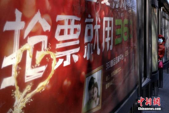 资料图:一款抢票浏览器的广告出现在北京的公交站台。中新社发 刘关关 摄