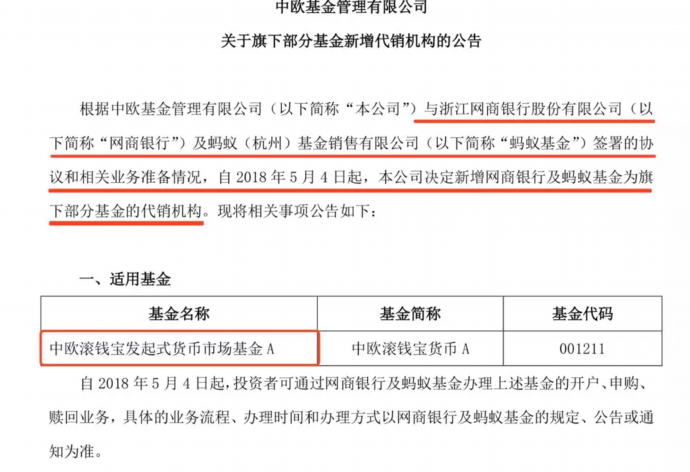 博时基金和中欧基金也几乎在傍晚7点左右同时发布了公告,宣布旗下部分基金新增蚂蚁基金、网商银行为其代销机构。