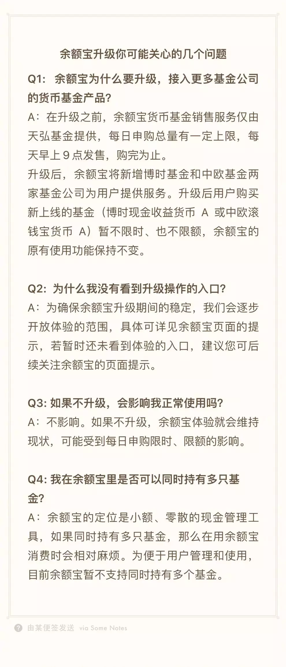 就在刚刚,余额宝宣布升级——5月4日零时起,新接入博时、中欧基金公司旗下的“博时现金收益货币A”、“中欧滚钱宝货币A”两只货币基金产品。