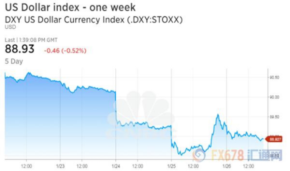 然后,本周美国财长努钦本周在达沃斯论坛的言论加剧了美元的跌势。努钦表示,“弱势美元对美国贸易有利”。对市场来说,这听起来像是对美元贬值的认可,及背弃美国长期口头支持强势美元的政策。