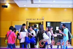 昨日下午,在香港高院第七法庭外,众多媒体记者在等候。