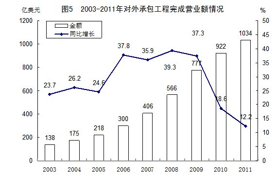 注:2009年起,“对外承包工程”完成营业额数据中包含了“对外设计咨询”。