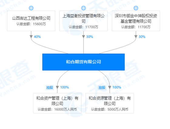 据了解,浙江维彤投资有限公司将收购天津印象田野商贸有限公司持有的上海益衡投资管理有限公司100%股权(简称“上海益衡投资”),也就是说,上海益衡投资将成为前者的全资子公司。而上海益衡投资为和合期货第二大股东,天眼查工商资料显示,和合期货的三大股东分别为山西吉达工程有限公司(持股40%)、上海益衡投资(持股30%)、深圳市御金中坤股权投资基金管理有限公司(持股30%),因此,上述收购完成之后,和合期货股东变更,浙江维彤投资有限公司将成为公司新晋股东。