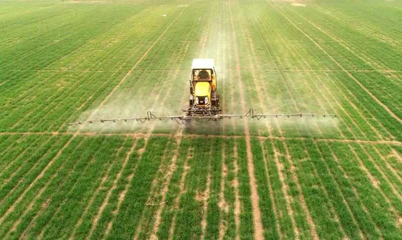 3月22日,在石家庄市栾城区南高村,村民驾驶自走式喷杆喷雾机给小麦喷洒营养液。 随着天气渐暖,石家庄地区小麦进入返青拔节关键期,当地农民抢抓农时,加强田间管护作业,为夏粮丰收打好基础。 新华社记者 骆学峰 摄