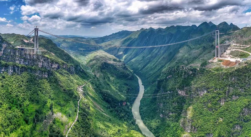 这是7月7日拍摄的建设中的花江峡谷大桥(无人机照片)。花江峡谷大桥是贵州六安高速公路的控制性工程,全长2890米,主桥桥面与谷底的北盘江水面垂直高度达625米。大桥建成后,将超越北盘江大桥,成为世界第一高桥。