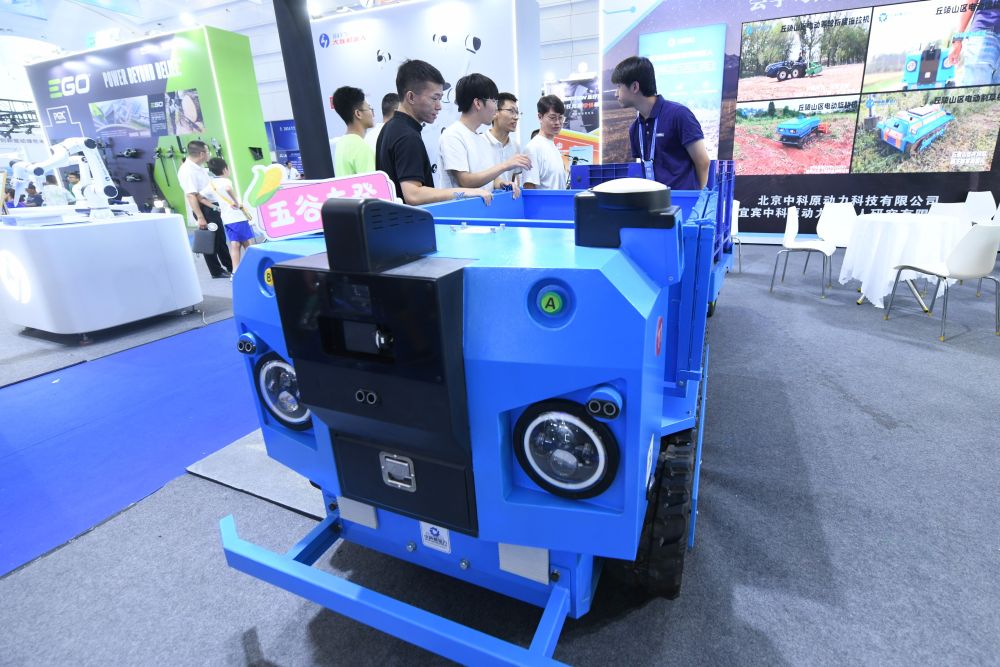 9月1日,在世界动力电池产业链供应链成果展示活动现场,参展商向观众介绍智农多功能运输机器人。新华社记者唐文豪 摄