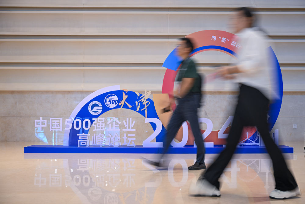 9月10日,以“向‘新’而行 打造更多世界一流企业”为主题的2024中国500强企业高峰论坛在天津举行。参会者准备步入论坛会场。新华社记者 孙凡越 摄