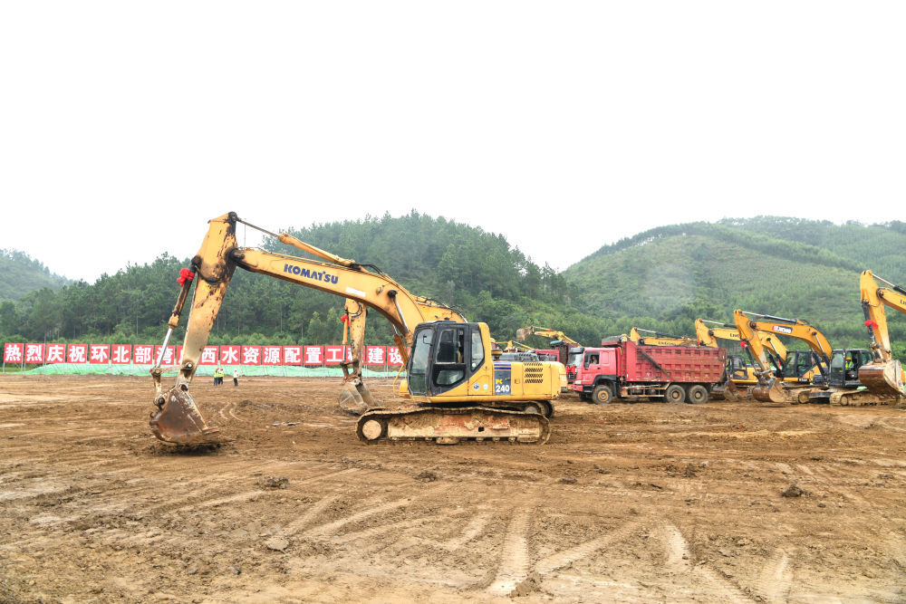 施工车辆在北海市合浦县环北部湾广西水资源配置工程建设现场。新华社记者 周华 摄