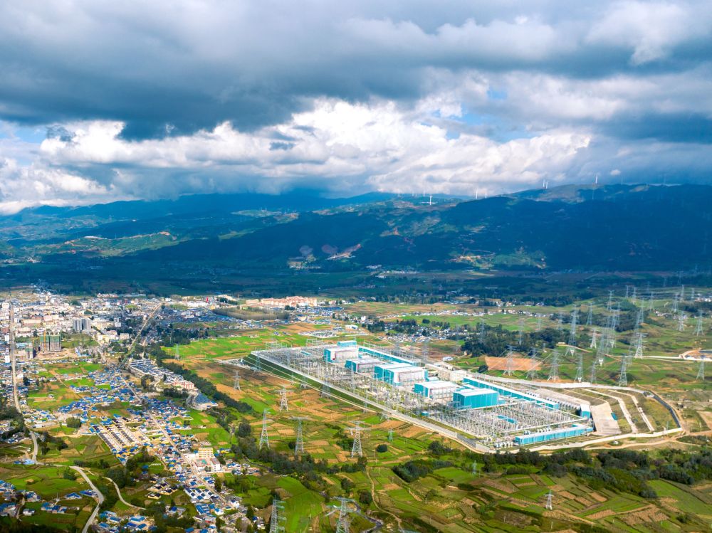 布拖换流站额定输电功率1600万千瓦,能够完全消纳白鹤滩水电站满发所生产的清洁电能,单日最大输送电量超3.6亿千瓦时,是我国“西电东送”最重要的送端之一。