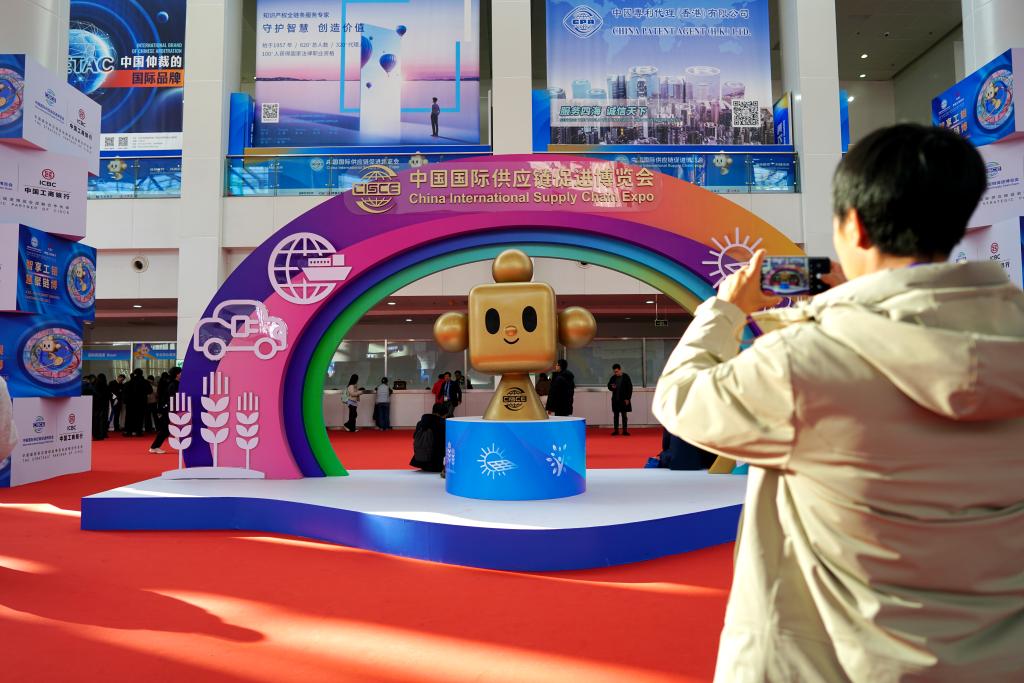 这是正在举行的第二届中国国际供应链促进博览会(简称链博会)上的一幕。这一中国举办的全球首个以供应链为主题的国家级展会,旨在通过论坛活动、展览展示、商务洽谈等多种方式,密切中外交流合作,帮助各国企业融入全球产业链供应链,实现共赢发展。