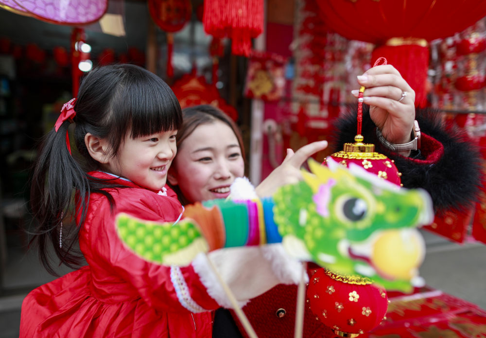 1月14日,市民在四川省达州市通川区珠市街年货市场选购春节饰品。新华社发(邓良奎摄)