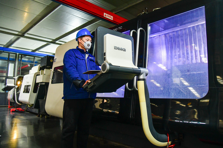 图为1月7日在山东省淄博市博山区域城镇山东博科真空科技有限公司,工人在操作数控机床。新华社记者朱峥 摄