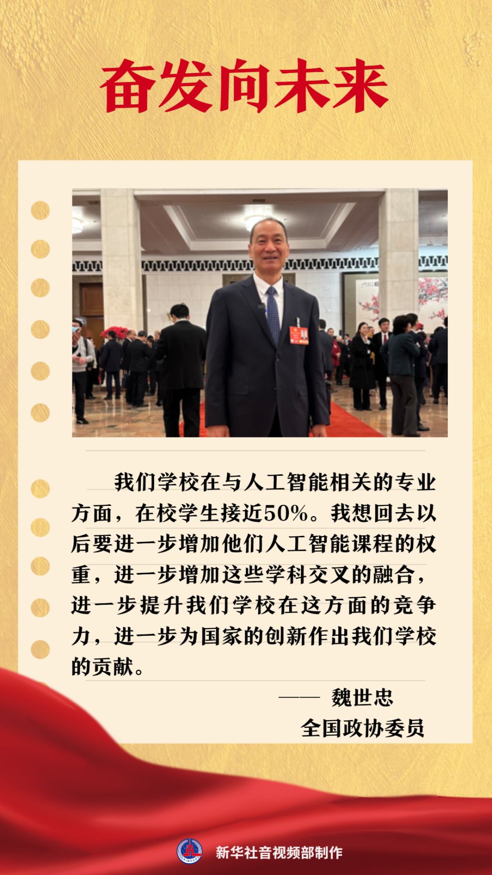魏世忠委员,来自科研一线,同时也是一位大学校长。他始终关注着创新领域和人才培养。