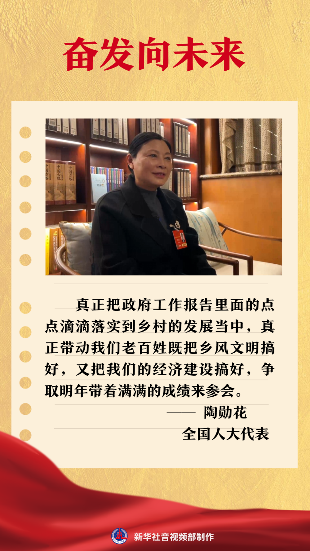 今年,成都市温江区寿安镇岷江村党委书记陶勋花代表把一只只哪吒毛线玩偶装进了行李箱,带到北京参会。她告诉记者,“这是村里姐妹们纯手工制作的,传递了乡村振兴的希望与活力。”