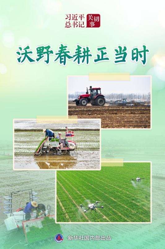 习近平总书记高度重视“三农”工作,多次走进农田考察春耕备耕情况,强调“抓好春耕备耕,对于确保粮食丰产和粮食安全至关重要”“在良种良法良机良田深度融合上下大功夫,落实好强农惠农富农政策”。