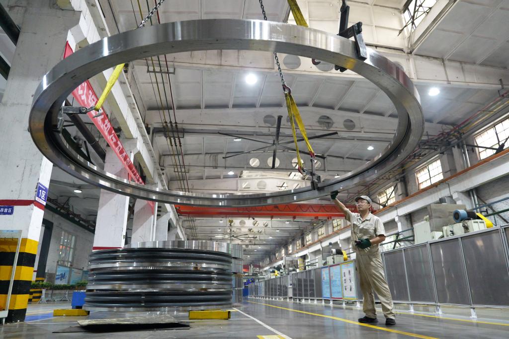 5月22日,工人在洛轴集团风电三车间生产线上作业。新华社记者 李嘉南 摄