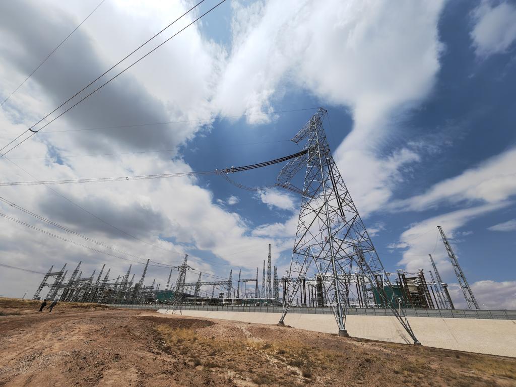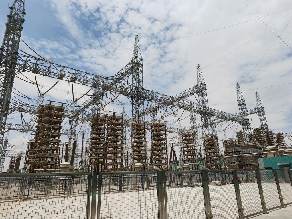 中宁换流站及外围的输电铁塔。新华社记者 许晋豫 摄