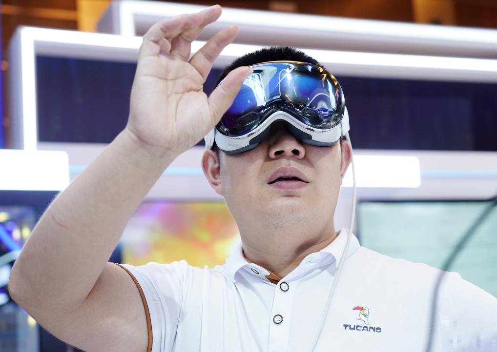 7月2日,参观者在2025全球数字经济大会数字经济国际交流合作体验区体验一款MR混合现实设备。新华社记者 张晨霖 摄