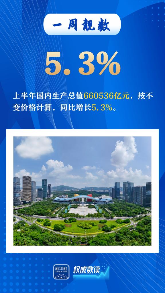 首页 > 要闻>财经要闻 权威数读丨一周“靓”数 新华社 2025-07-19 09:40 上半年国内生产总值同比增长5.3%,夏粮产量2994.8亿斤,5G移动电话用户超11亿户……本周这些数据,最值得关注。 文案:曹建礼 制作:任彦逸