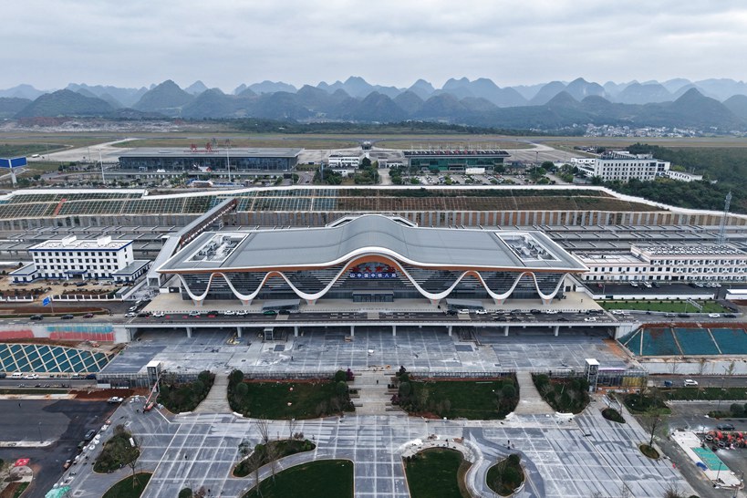 11月12日拍摄的盘兴高铁兴义南站(无人机照片)。