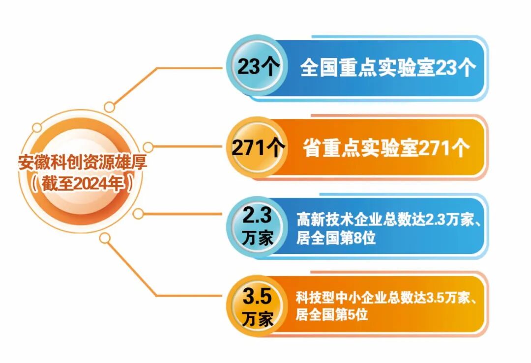 数据折射成效:2024年,安徽高新技术企业达2.3万家、科技型中小企业3.5万家,数量均居全国第一方阵;企业研发投入首次突破千亿元大关,对全社会研发投入增长的贡献率超过80%。