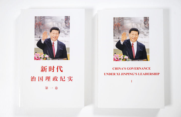 这是《新时代治国理政纪实》第一卷中英文版。由新华通讯社编撰的《新时代治国理政纪实》第一卷,近日由新华出版社以中英文版出版,面向海内外发行。新华社记者 才扬 摄