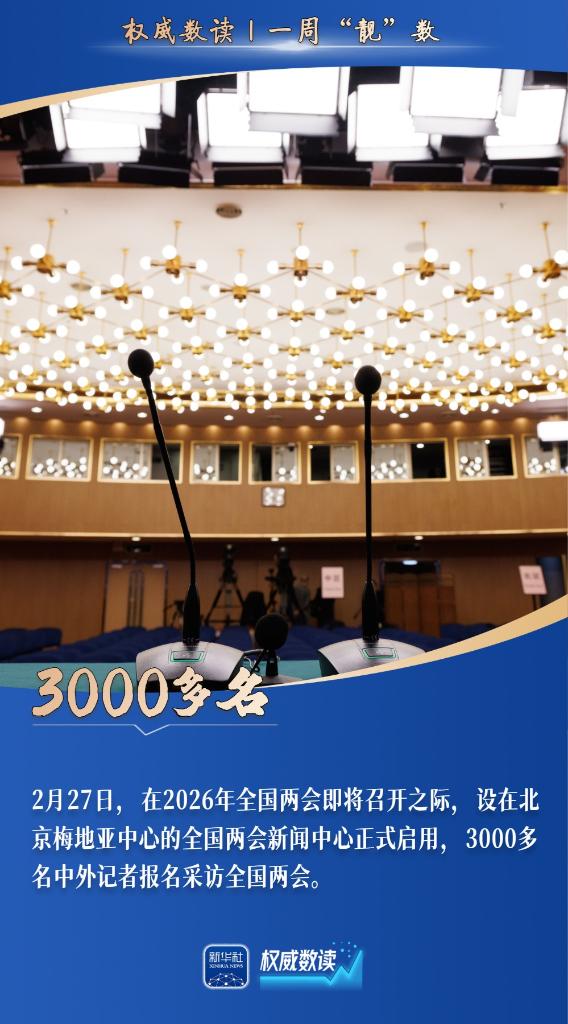 2月27日,全国两会新闻中心正式启用,3000多名中外记者报名采访全国两会;春节假期9天,全社会跨区域人员流动量为28.08亿人次;2025年全国环境空气质量实现历史最优……本周,这些数据最值得关注!