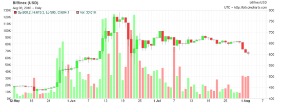这是同类交易平台的第二大入侵失窃事件,另一家比特币交易所MtGox在2014年有超过4.7亿美元的比特币遭黑客窃取,被迫申请破产,引发比特 币价格暴跌逾30%。失窃消息传出后,Bitfinex比特币下挫逾23%,随后有所反弹,8月3日最终交易价为566.79美元。