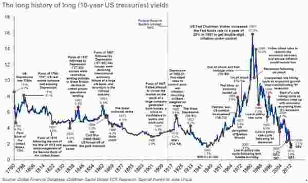 但是,如果我们研究一下十年期美国国债的历史走势图,会发现目前十年期美国国债收益率约为2.49%,已经接近历史最低水平。过去几十年中,美国十年期国债收益率唯一另外一次跌至如此低位时是在1945年,当时正处于第二次世界大战期间。