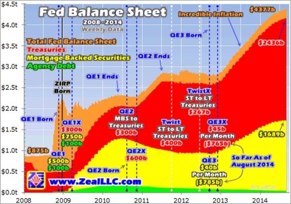 因此,考虑到美国十年期国债收益率的历史走势情况以及美国股市投资收益率与无风险国债利率之间的关系,投资者又该作何选择?分析师认为,目前投资者应当对投资股票和债券资产非常谨慎,因为美国股市如今的估值水平已经被股市之外的许多因素扭曲,包括美联储政策。在过去短短几年时间中,美联储资产负债表的规模已经从1万亿美元快速攀升至4万亿美元。