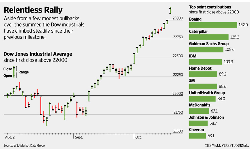 道琼斯指数周三一举突破23000点大关,但这个最新的里程碑却掩盖了一些不祥的趋势。