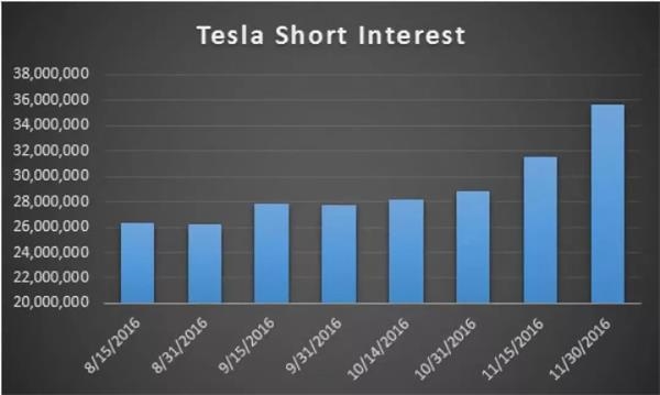 特斯拉空头仓位变化(图片来源:amigobulls)