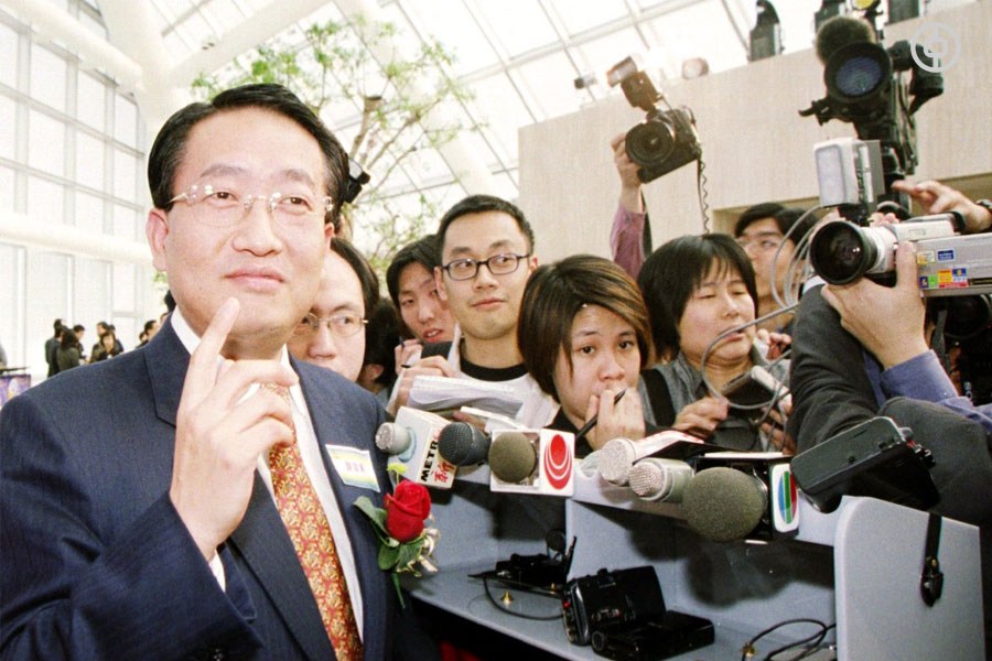 资料图:中银香港原总裁刘金宝在接受香港媒体的采访(2006年)。作为一个风云人物,刘金宝曾协助中纪委、最高人民检察院,调查金德琴、王雪冰、朱小华等多起金融部门高层领导干部腐败犯罪案件。2005年8月12日刘金宝遭法院就贪污罪判处死刑,缓期2年执行。