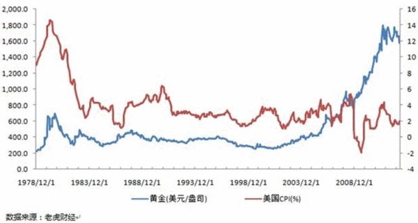 在通货膨胀时期,黄金作为保值投资品更受追捧,通货膨胀将推涨黄金价格。分析黄金价格的历史可以发现,金价的变化与美国的货币政策以及随后导致的通胀情况密切相关。