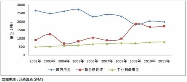 随着现代工业和高科技的发展,用黄金制作的珠宝、饰品、摆件的范围和样式不断拓宽深化。而随着人们收入的不断提高、财富的不断增加,以及保值和分散化投资意识的不断提高,也促进了这方面需求量的逐年增加。