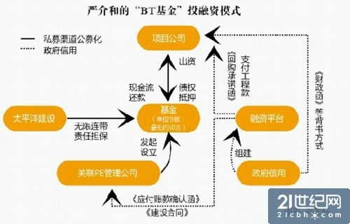但是,与此前宣称自己投身新型城镇化,将由年利率仅约3%的境外养老基金支持时不同,严现在的融资渠道几乎彻底祛魅。本报调查显示,严今年已经启动的公益性项目代建,几乎都以其自己在上海发起的一家所谓私募基金管理公司,以“应收政府债权”包装“BT私募基金”广泛募资,承诺高于10%的固定年收益率。(详见配图)