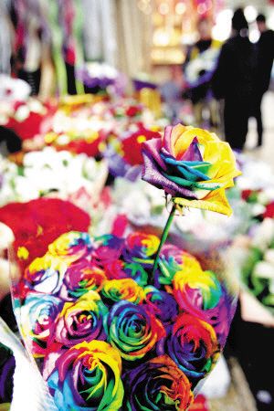 记者了解到,该店出售的普通红玫瑰已经由前几日的5元一支,上涨为8元一支,部分进口玫瑰都在百元以上。“这些水晶玫瑰、七彩玫瑰平时都没人买,我们也不会进货,因为价格确实太高了。但在情人节就不一样了,我们会尝试各种新品。”店主解释称。