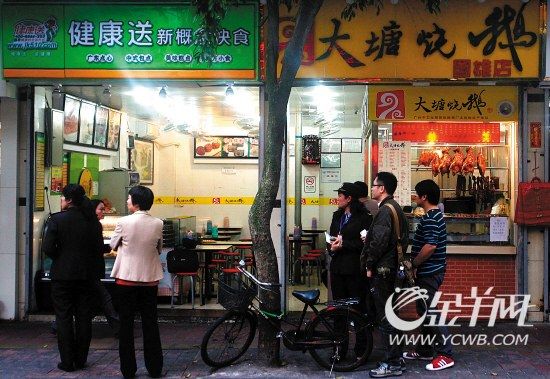 大塘烧鹅国雄店老板黄某介绍,该店于去年5月份开业,当时他加盟了“大塘烧鹅”和“健康送”两个品牌,店内所售烧腊及点心等食品均由这两家工厂每天配送,而配餐所用米饭和青菜则由店里自行准备。