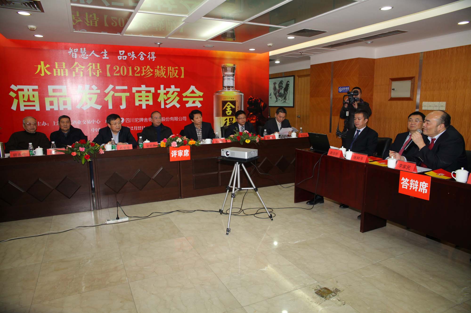 2月22日,“水晶舍得【2012珍藏版】酒品发行审核会”在遂宁康年大酒店隆重举行。著名白酒专家、中国酿酒工业协会高级顾问、原中国酿酒工业协会白酒分会专家组组长梁邦昌;中国酿酒工业协会副理事长兼秘书长王琦;上海市酒类专卖局局长卢荣华;著名白酒专家、四川酿酒协会专家委员会主任曾祖训;中国食品协会白酒专业委员会高级顾问、四川酿酒协会专家组副组长、四川省委省政府决策咨询委员胡永松;中信建投证券股份有限公司研究团队消费组组长,食品饮料、农林牧渔业首席分析家黄付生以及上海国际酒业交易中心总裁李雯峰等专家出席会议并担任审核委员。
