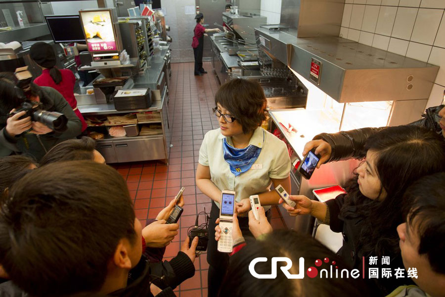 国际在线消息:2012年03月15日,北京,“3.15”晚会曝光的三里屯麦当劳店现已停业。卫生部门执法人员入店进行检查,大批记者涌入店内采访,九点过后,店员进行了10分钟左右的打扫后关闭店门停业。