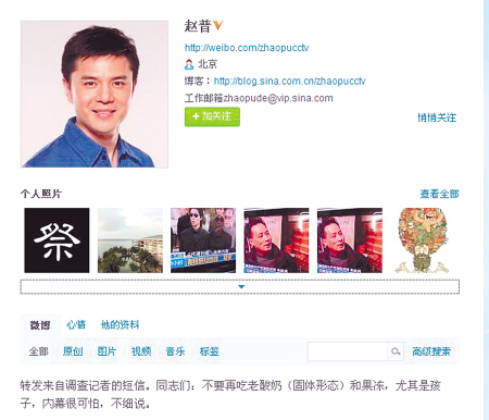 赵普微博截图。