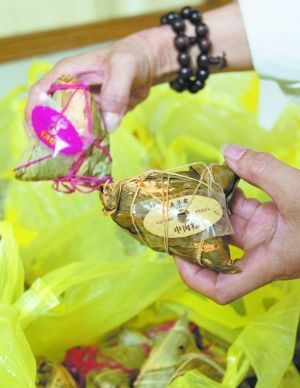瞿先生6月12日从五芳斋订了粽子,“我们直接联系五芳斋嘉兴总部订的,一共订109份,每份包括20个中肉粽和10个豆沙粽。当天早上8点半左右,他们的货就运来了。”瞿先生回忆,“肉粽运来时是热的,还能看见蒸汽冒出。”