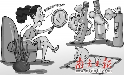 隆力奇公司产品专家也解释称,该品牌驱蚊花露水严格按照国标规定,每100毫升中最多含有5毫克的避蚊胺,驱蚊水本身对身体毫无害处可放心使用。“此成分属于农药类,必须报批农药生产批准文件号,我们的产品在包装明显处均注明了避蚊胺的含量。”不过,该人士也指出,婴幼儿和皮肤敏感者慎用驱蚊类花露水,因为花露水中含有50%~60%的酒精等相关成分,对皮肤刺激性较大。婴儿使用前对其进行稀释后才可。