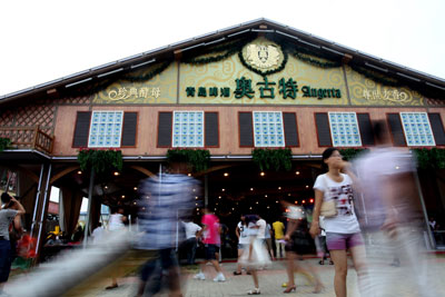 昨天是青岛啤酒奥古特主题日,记者在奥古特大棚内看到,不少游客举杯畅饮色泽金黄、清澈的奥古特扎啤。开城式的第一桶酒是在奥古特开启的,很多游客慕名赶来尝鲜。大棚负责人邵先生介绍说,奥古特啤酒是青岛啤酒倾力打造的一款高端商务啤酒,特别适合于公司庆典、商务宴请、高端酒会等商务宴会场合,“我们的啤酒好在原料和工艺上,麦芽选用加拿大和澳大利亚的大麦,酒花选用被誉为‘捷克黄金’的全球最顶级的捷克萨兹酒花,其中最珍贵的是1903年奥古特从德国带来的上乘酵母,结合青岛百年酿造工艺,酿造出了这款能高贵的啤酒。”