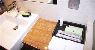 “很少有酒店能提供像我们这样高端的一次性用品,这也是很多顾客喜欢住我们酒店的原因。这只是普通房,我们还有50间豪华套房,里面用的是法国著名化妆品牌欧舒丹。”带领记者看房的酒店销售经理告诉记者。